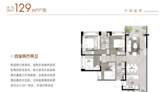项目在产品设计上注重品质与舒适性。户型涵盖 129 - 180 平四房,采用 LDK 一体化设计,有效提高空间利用率,增强空间的通透感与互动性。建面 129 平四房入户花园设置家政房,方便生活;140 平四房采光面高达 18 米,通风采光俱佳;180 平四房会客厅超 40 平,7.4 米宽景阳台与南向 4.5 开间朝南,双主套设计尽显奢华。装修选用大金、唯宝等国际品牌,公区设计有酒店式主入口、单元大堂等,提升居住体验。整体产品设计既满足了家庭对空间的需求,又兼顾了居住的品质与舒适性。