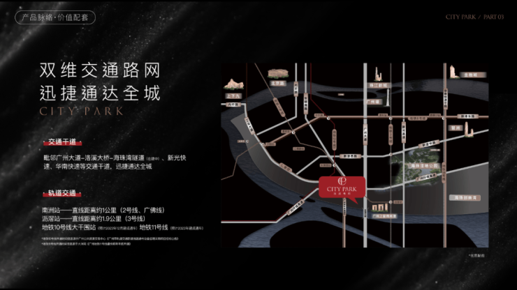 西派粤府周边生活配套齐全,购物、餐饮、休闲一应俱全。项目位于南中轴核心地段,靠近广州大道、珠江南岸滨江路等主要干道,步行即达高端商圈及滨江休闲区域。交通便利,未来还将形成多条地铁与快速路网络交汇的立体交通格局,实现20分钟内纵横全城。无论是日常生活购物、休闲娱乐,还是商务出行,都能快速抵达,真正将城市顶配资源转化为家门口的便利,让生活从容且高效。