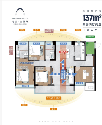 湾区金融城打造70-142㎡全周期户型产品,覆盖刚需、改善、高端置业等多元需求,其中88㎡3+1室2厅2卫与135㎡阔绰四房为项目主力户型,凭借高得房率、优空间布局成为市场热门选择。88㎡3+1室2厅2卫户型为南入户设计,是横沥岛稀缺的小面积四房产品,在有限空间内实现四房带主套的极致布局,得房率高达82%,空间利用率远超同面积段产品。户型全明通透,南向超大面宽设计保证充足采光与通风,LDK一体化布局让公共空间更显开阔,主卧套房配备独立卫浴与衣帽间,兼顾私密性与舒适度,灵动空间可根据需求改造为书房、儿童房或储物间,满足家庭全周期居住需求,以小面积实现大功能,是刚需与刚改客户的优选户型。135㎡四房户型主打改善居住体验,阔绰空间布局搭配宽景阳台,拥揽社区园林与外部景观双重视野,主卧尊享独立卫浴、衣帽间与观景飘窗,彰显高端居住格调,各个卧室空间宽敞舒适,动静分区合理,保障居住私密性,全屋硬装交付搭配中央空调,细节处提升居住品质,满足高端改善家庭对空间与舒适度的双重追求。