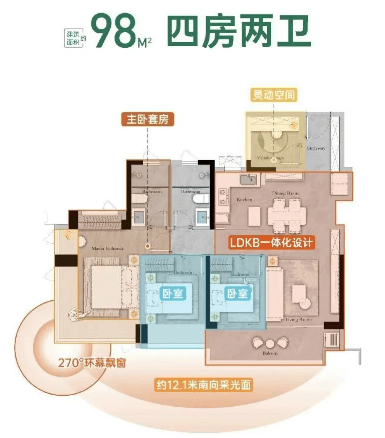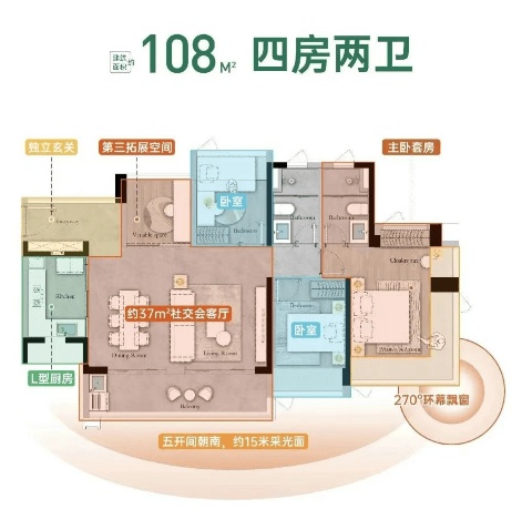 约108㎡四房两卫 每个户型都经过精心设计,使用率接近100%,为业主提供宽敞舒适的居住体验。