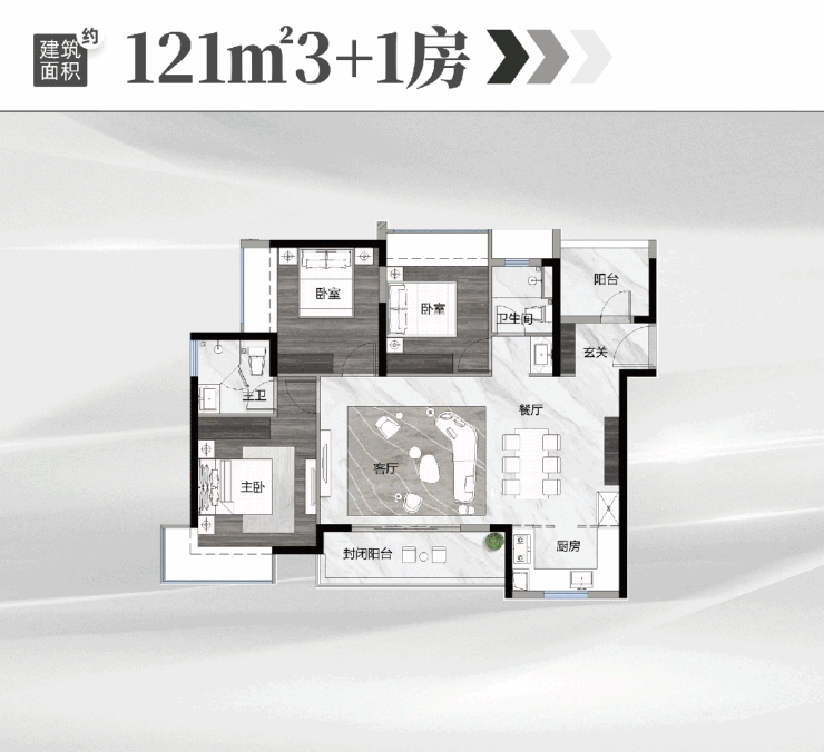 118 平户型全屋四空间,进门有独立玄关,收纳能力超强。全屋南北通透四开间朝南,公区约 25 平厅为核心,LDK 一体化设计,家庭场景切换自如。约 6.6 米宽景阳台,观景、采光一流,还能变成全家人的第二客厅,爸爸弄花园,妈妈做瑜伽,傍晚一家人品茶看晚霞。超大 U 型厨房,爸妈一起做饭也不挤,烹饪动线流畅。“三进式” 主套,衣帽间、私卫都有,生活仪式感满满。