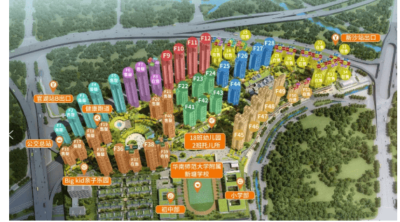 教育配套堪称王牌:自带华南师范大学附属新塘学校,涵盖小学 42 班、初中 21 班,由华师附小本部副校长吴启航亲任校长,小学 2021 年 9 月、初中 2022 年 9 月已开学,招生仅限本小区业主。另有 2 所托儿所、2 所幼儿园(新塘镇东区幼儿园已开学),满足 12 年全龄教育。生活配套上,2.5 万㎡商业街已开业,麦当劳、钱大妈等入驻;26 万㎡立体空中园林含游泳池、篮球场等,广州图书馆直属分馆(3 万册藏书)已开放,可全市通借通还。