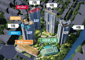 120㎡:四房两厅两卫,四开间朝南,南北双阳台或南向大阳台,主卧带270°飘窗。