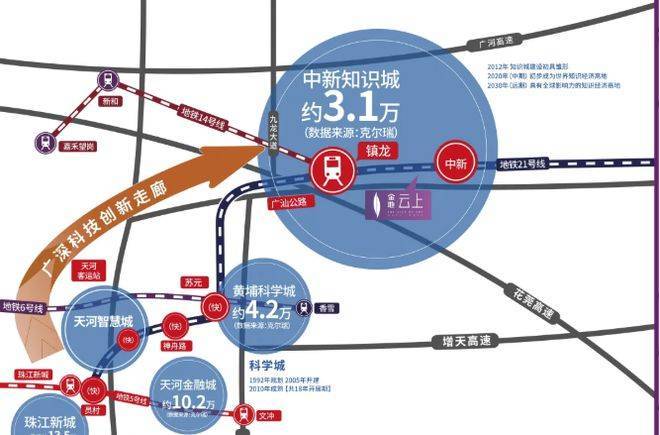 项目紧邻黄埔区知识城,处于不限购区域,且在科学城、知识城、科教城、增城・国家经济开发区 4 大重点规划区的交汇地带,坐拥约 60 万人口红利,尽享 4 大片区的资源利好,发展潜力巨大。