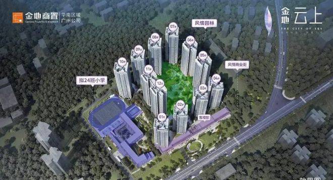 金地云上位于广州东・知识城南・中新地铁站 A 出口。由金地商置开发,项目占地约 6.29 万㎡,总建面约 28.9 万㎡,总栋数 12 栋,总规划 2296 户,容积率 3.2 ,楼层高 26 - 33 层,梯户比为二梯六户、二梯七户,分 3 期开发。产品类型为建面约 60 - 90㎡精装二至三房,物业管理由国家一级资质物业服务企业和融物业负责,为业主提供专业的物业服务。