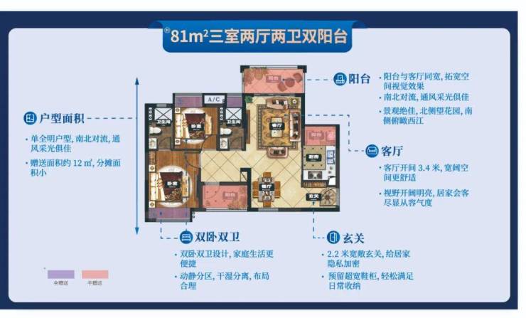 81㎡三房两厅一卫:紧凑实用,适合年轻首置家庭;