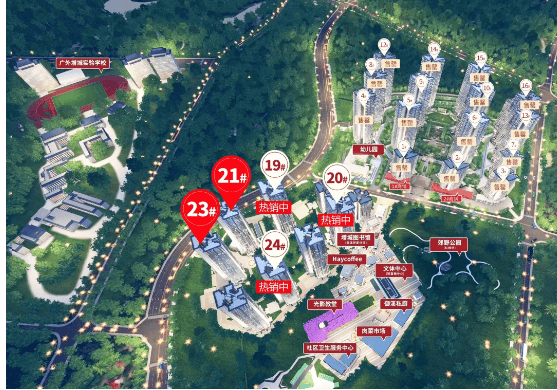 答:社区内规划了环形跑道、运动健身场所、各年龄段儿童专属活动区,还有架空层共享空间与岭南园林,无论是年轻人运动、儿童玩耍,还是长辈休闲,都能找到合适的场所。