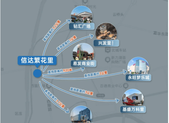 信达·繁花里周边配套成熟完善,商业、医疗等便利设施一应俱全,3km范围内汇聚三大核心商圈,4km内坐拥3所甲级医院,全方位满足业主的日常生活需求,尽享便捷舒适的生活体验。