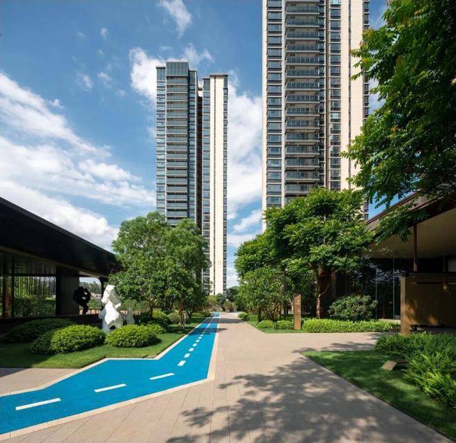 项目不仅拥有内部约3.6万平方米的私家园林,更被外部大型生态公园环抱。约3公里范围内,有大象岗森林公园等城市绿肺,以及长隆旅游度假区这一国家级旅游目的地。社区外围还有河涌碧道环绕。这种“内部森系园林+外部城市公园+主题度假区”的多重生态加持,为业主提供了从日常散步、周末踏青到假日游玩的全维度休闲选择,在高效枢纽旁实现了健康、绿色的生活方式。