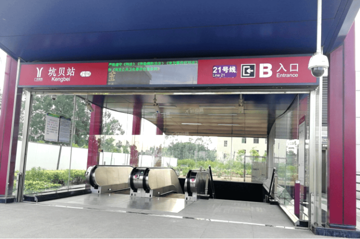 问:项目距离地铁 21 号线坑贝站多远?到天河、珠江新城需要多久?