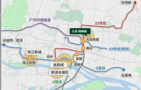 合景臻颐府构建“两横两纵三地铁+双城际”五维立体交通路网,实现全城快速通达与跨城无缝互联,为业主出行提供极致便捷体验,轻松执掌城市交通命脉。道路交通层面,项目依托悦景路、大观南路等城市主干道,形成两横两纵便捷路网,自驾可快速直达珠江新城、天河智慧城、国际金融城等中轴核心片区,车程均在20分钟以内,兼顾工作通勤与休闲出行;同时可快速接驳广州绕城高速、华南快速等城际干道,直达白云机场、广州南站两大交通枢纽,实现与粤港澳大湾区其他城市的高效联动。轨道交通层面,项目周边覆盖三条地铁线路,现有地铁21号线智慧城站距项目约1.5公里,作为全球首座AI智慧车站,具备刷脸过闸、语音购票等智能功能,科技感与便捷度兼具;地铁4号线黄村站距项目约2公里,南北贯穿广州主城,串联琶洲、南沙等核心板块;规划中的地铁19号线大观南站预计2025年开通,线路全长约34.2公里,覆盖广佛衔接通道,未来将进一步提升项目轨道交通便捷度。城际轨道方面,广佛东环线与穗莞深城际轨道均在建设中,建成后可直达白云机场、广州南站,实现空铁联运,满足业主商务出行、旅游探亲等多元需求。此外,项目周边公交线路密集,覆盖周边商圈、医院、学校等核心场所,公共出行选择多样。全方位立体交通网络,既保障业主日常出行高效便捷,又提升项目区位价值,让业主在享受静谧居住环境的同时,无缝衔接城市繁华。