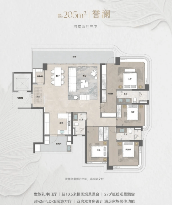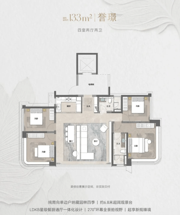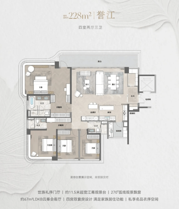 能建·天誉府推出的户型面积涵盖133-228平方米,均为四房设计,使用率接近100%,部分户型主卧北向望江,西面有阳光补充,空间舒展度高。具体户型包括: