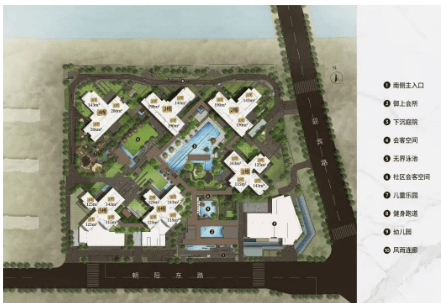 占地面积 32153.89㎡,建筑面积 96461.67㎡,规划户数 660 户,容积率 3.3 ,绿化率 35.04%,总层高 30 - 32 层 ,车位比 1:1.75 ,由 6 栋住宅和 1 栋幼儿园组成。这样的规划旨在打造一个既保证居住密度适中,又能提供较为丰富绿化与休闲空间的高品质社区。