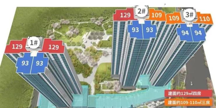 户型覆盖范围:佳大瑞园目前在售户型涵盖建面约93-95㎡、110㎡、129㎡四种户型,均为三房及以上设计,适配刚需、刚改等不同人群的置业需求。所有户型均为2梯4户设计,户户朝南,采光通风俱佳,布局合理,空间利用率高。