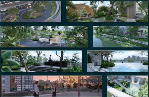 约1.6万方空中园林是项目的心跳,构建云端花园、全景露台、无边泳池等景观层层叠加。架空层和裙房变身为微型垂直城市,空中花园串联各层,漫步其中如置身空中秘境。商业体嵌入其中,日常购物、餐饮一应俱全,不必下楼即可满足需求。这种设计让社区自成一体,邻里互动频繁,营造温馨归属感。湿地公园的生态资源触手可及,晨跑瑜伽、亲子漫步,皆在咫尺之间,健康生活从这里启航。