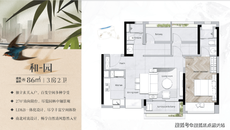 86㎡三房两卫:南北对流,270°全景阳台,总价约460万起;