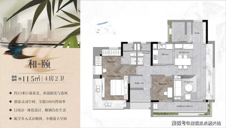 115㎡四房两卫:端厅设计+13米面宽,总价约560万起;