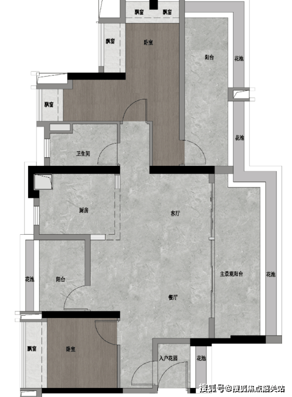 107㎡四房两卫:总价650-700万元,主卧270°转角飘窗;