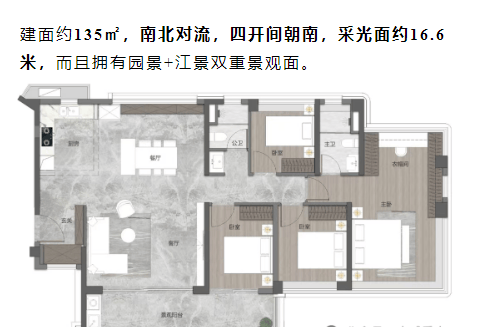 三、户型设计亮点:超新规高使用率,江景户型标杆