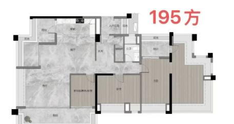 195㎡四房两厅三卫:高区楼王户型,LDK 客餐厅面积 70+㎡,使用率超 130%;8 米宽景阳台 + 16 米观江面,双主卧套间(均带独立卫浴);主卧 270° 江景飘窗 + 步入式衣帽间,全屋奢装交付;总价 1150-1200 万,适配高端改善家庭。