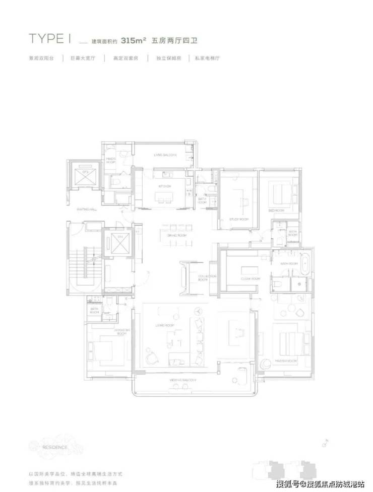 315㎡五房顶层复式:私家电梯入户,270度环幕观景阳台,对标世界级豪宅,仅限少量席位。