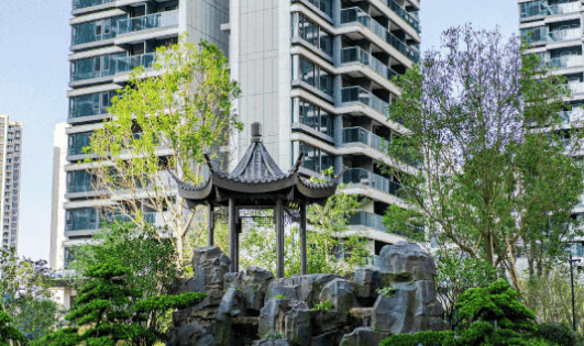 东建明德城在社区配套上 “内外兼修”,不仅外部依托成熟商圈,内部也打造了兼具观赏性与实用性的生活空间。园林设计由豪宅园林专家 “山水比德” 操刀,以 “南国蓬莱” 为灵感,融入岭南文化元素,打造 “两轴一带,五园八景” 的主题园林,园内随处可见中式取景框、曲径步道与四季绿植,漫步其中既能感受自然意趣,又能体会传统文化韵味,为业主提供休闲散步的好去处。