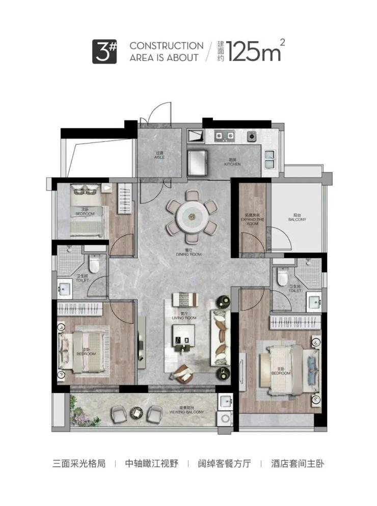 答:项目户型涵盖125㎡三房、140㎡四房、190㎡四房以及260㎡的大平层等。最为人称道的是其极高的“望江率”。由于占据岛尖头排,项目整体约93%的户型拥有江景视野,尤其是前排楼栋,实现了100%南向望江。部分端头户型更可享受270度环幕江景,将IFF、翡翠绿洲公园及三江交汇的盛景尽收眼底,这种视野在广州楼市中极为罕见。
