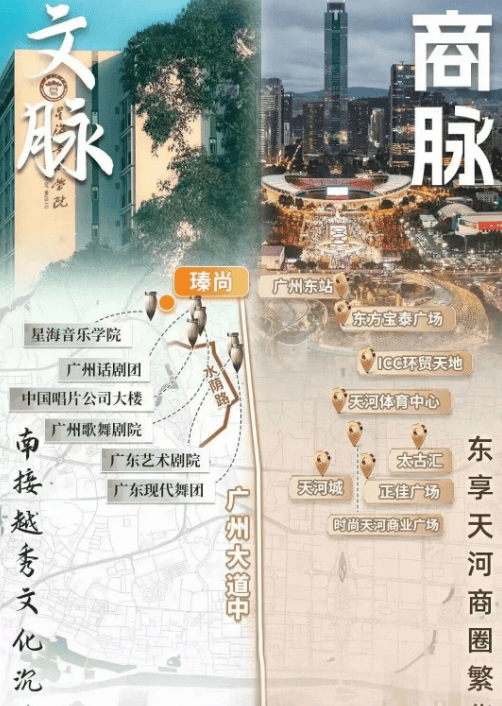 英广瑧尚地理位置优越,位于越秀和天河接壤的黄金地带,拥有丰富的历史文化背景和现代商业资源。项目周边三条地铁线交织(5号线、6号线、11号线),距离最近的地铁站仅约500米,出行极为便捷。