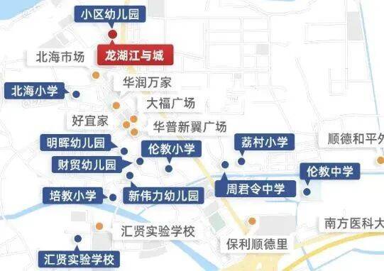 教育方面,龙湖・江与城自身配建了一所面积达4800平方米的幼儿园,并且周边还有北海小学、汇贤实验中学、伦教中学等十所名校,教育资源丰富。商业配套同样出色,项目处于主城居住区,近享五公里全维醇熟生活圈,北滘商业广场、保利顺德里、华侨城PLUS等七大旗舰商业环绕四周,满足日常生活所需。医疗保障方面,南方医科大学顺德医院、顺德妇幼保健院两大三甲医院为家人健康保驾护航。休闲娱乐设施齐全,距离千亩滨江公园仅约300米,是散步放松的好去处。