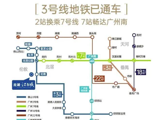 龙湖・江与城紧邻佛山地铁3号线伦教站,该线路已于2022年12月28日开通运营。通过地铁,两站即可换乘7号线,九站可达广州南站,轻松实现半小时通勤圈。此外,项目出门即上105国道,一桥通番禺,无论是自驾还是公共交通都非常方便。完善的交通网络不仅缩短了居民的通勤时间,也大大提升了生活的便利性。