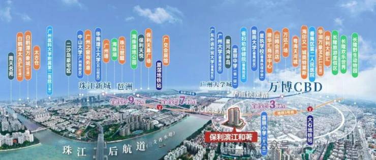 卖点一:万博CBD核芯,抢占湾区发展红利:保利滨江和著坐落于番禺区大石街道,地处万博CBD旁,作为广州新中轴南拓首站,紧邻世界级地标商圈万博CBD,商业规模远超10个天河城,汇聚约39座甲级写字楼、超2.2万家企业,IBM、微软、希音等世界500强企业争相落户,未来将打造成世界级消费中心、湾区文商旅融合发展典范区。项目占位星河湾滨江带,无缝衔接万博CBD繁华配套,同时依托珠江后航道发展规划,既能享受商圈红利,又能坐拥江景资源,地理位置得天独厚,未来发展潜力无限,是万博CBD旁稀缺的江景宜居优选。