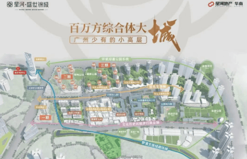 星河·盛世锦城,坐落于广州市番禺区的万博百万方城市低密大城内,紧邻余荫山房和板桥地铁站。该项目总建筑面积约为114万平方米,涵盖了教育、购物、休闲、居住、商办等多功能配套设施,为居民提供了一个全方位满足生活需求的理想居住环境。