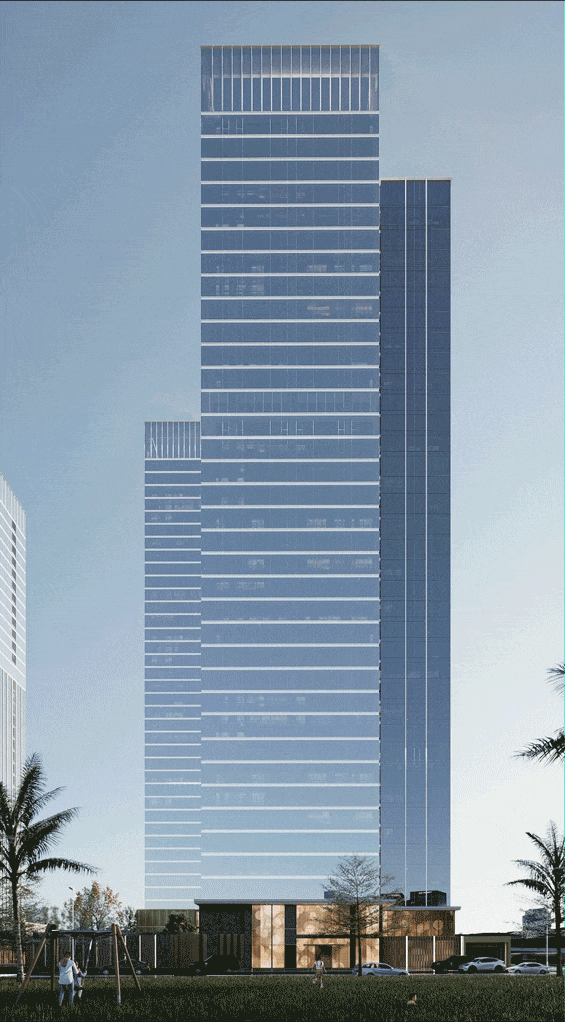 得益于这恰到好处的距离,项目既承接琶洲利好与富人的购买力,又独享城央的一份低密绿意。大尺度玻璃幕墙外立面,形成一抹轻盈明快的亮色ICON,如阳光照耀,亦如月光披拂,极具辨识度,成为琶洲CBD的一道独特风景。