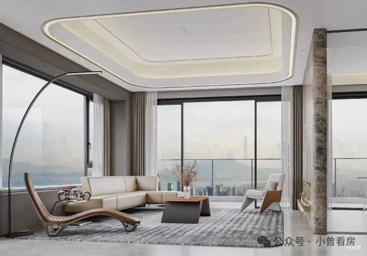 在客厅的设计上,项目采用了大开间横厅设计,最大面宽超过 20 米的连续采光面,让整个客厅拥有极致的采光效果与视野体验。客厅与观景阳台无缝衔接,形成了超大的家庭活动空间,无论是日常家庭休闲、孩子玩耍,还是周末朋友聚会、商务宴请,都拥有充足的空间,尽显主人的格局与气度。大尺度的观景阳台,不仅可以作为日常晾晒、家政使用,更可以根据主人的喜好,打造成空中花园、休闲茶座、健身空间,为生活增添更多的可能性。