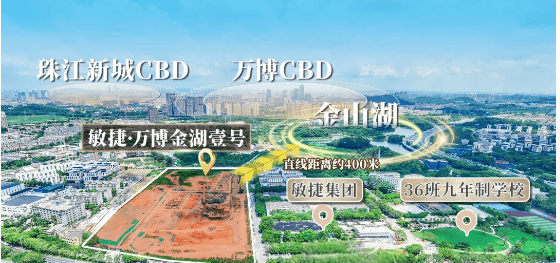 项目总规划 15 栋住宅,分南北两地块开发(南地块 10 栋 27-31F 高层),首开 1-2 栋(紧邻敏捷集团总部大楼),总户数适中,居住氛围纯粹。开发商为敏捷集团(本土房企,开发经验丰富,总部近在项目旁,后期维护有保障),南地块采用围合式设计,绿化率与社区空间规划注重居住舒适度,配建 12 班幼儿园,满足业主基础教育需求。项目身处万博 CBD 核心辐射圈,紧邻番禺最大湖泊金山湖,兼具 “CBD 便捷” 与 “湖居静谧”,生活价值与景观稀缺性突出。