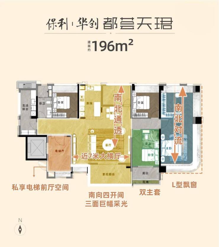 保利华创都荟天珺由保利集团旗下“天字系”团队操刀,以“纯粹大平层”定位填补珠江新城东区高端住宅空白。项目总占地面积1.1万平方米,总建筑面积3.8万平方米,容积率3.4,绿化率35%,规划3栋高层住宅(20-26层),仅166户稀缺房源,主力户型为157-257㎡四至五房,适配企业高管、高净值人群等高端客群。