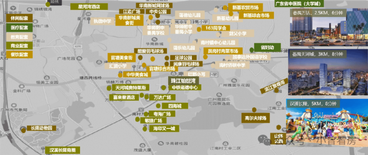 项目周边覆盖了全年龄段的生活配套,可满足业主日常的各类生活需求,实现生活无忧。教育配套上,项目自身配建了 24 班的华师附中番禺小学,以及 12 班的公立合美铂世湾幼儿园,两所学校均已投入使用,业主子女可就近入学。除此之外,项目周边 3 公里范围内还有星执学校、华附番禺学校等优质学府,可覆盖从幼儿园到高中的 3-18 岁一站式教育体系,解决家长的教育焦虑。商业配套上,项目自带约 1.2 万㎡的花半里商业街,目前已有超市、餐饮、生鲜等多家商户入驻,可满足业主的日常消费需求。同时,项目 5 公里范围内汇聚了万达广场、天河城百货、四海城、奥园国际中心等 9 大成熟商业体,总商业体量超 150 万㎡,可满足业主的休闲、购物、娱乐等多元化需求。医疗配套上,项目周边 3 公里内有广东省妇幼保健院番禺院区、番禺区中医院等三甲、二甲医院,同时社区内配备了社区医疗服务站,可满足业主日常的就医、体检需求,全维配套让业主的生活更加便捷。