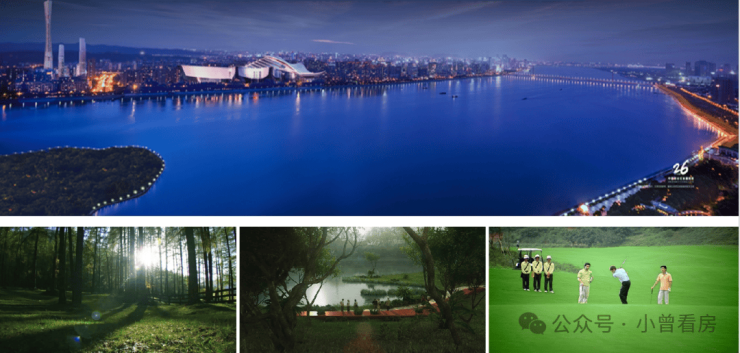 项目被多重生态资源环绕,为业主打造了鲜氧环绕的栖居环境。项目北侧紧邻珠江岸线,拥有约 2.3 公里的一线滨江景观带,业主在家中即可眺望江景,日常也可到滨江步道散步、慢跑,享受江风带来的舒适体验。项目西侧紧邻江山高尔夫俱乐部,这个 18 洞的国际标准高尔夫球场,不仅为项目提供了开阔的视野,也带来了大面积的绿地生态资源,区域内的绿地覆盖率超 40%,负氧离子浓度较市区核心区高出约 30%,日常可享受清新的空气。除此之外,项目周边 1 公里范围内还有番禺滨江公园、大学城中心湖公园等城市生态公园,总公园面积超 200 万㎡,为业主提供了休闲、游玩的好去处。社区内部,项目打造了约 10 万㎡的中央园林,采用了围合式的布局,打造了多重景观组团,包括儿童游乐区、成人健身区、休闲会客区等全龄段的活动空间,绿化率达到 35%,楼栋之间的园林景观错落有致,移步异景,让业主在社区内即可享受鲜氧环绕的生活,远离城市的喧嚣。