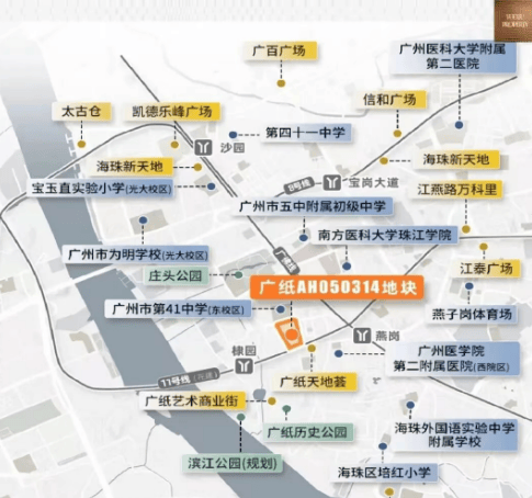 项目位于广州市海珠区重点开发的广纸板块,地理位置优越。距离广佛线燕岗站仅约400米,步行约5分钟即可到达;距离新开通的11号线棣园站约250米,步行约3分钟。便捷的交通网络让居民轻松连接广州各个区域,并能享受广佛两地的优质资源。