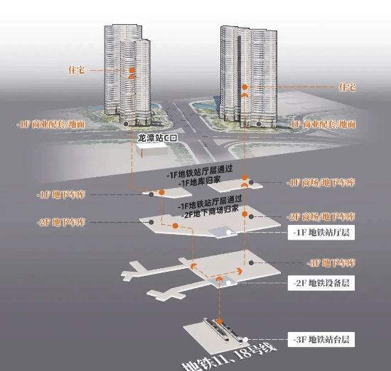 珑璟台坐落于 18 号线龙潭站上盖,双地铁加持,11 号线与 18 号线在此交汇。11 号线串联广州三大发展中轴,18 号线联通多个湾区城市,畅达珠江新城、琶洲、白鹅潭等核心区域。周边教育资源丰富,虽当前学区暂不明确,但西侧规划 18 班中学,且临近赤岗东小学等。医疗方面,广东省第二人民医院等多家三甲医院在 5 公里以内。商业上,小区自带约 1.44 万㎡底层商业,约 600 米外有赤沙 TOD 旗舰商业中心,10 - 15 分钟车程可至广州塔、珠城等商圈。