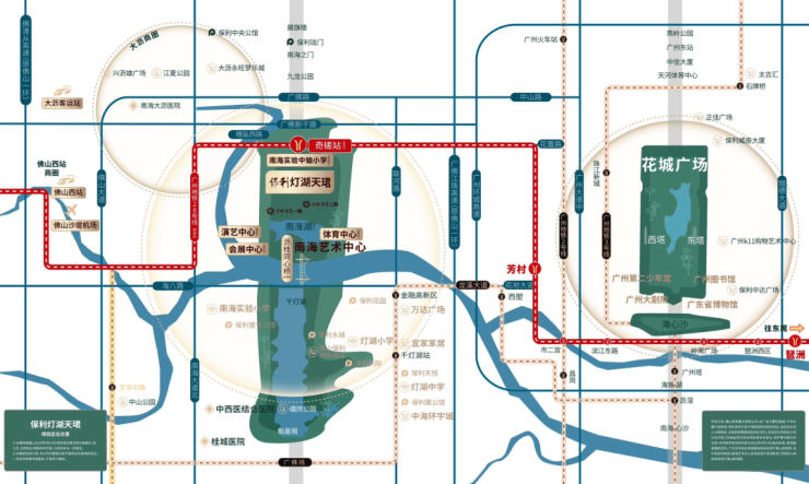 保利灯湖天珺地处灯湖北延头牌,坐拥广州28号线交通枢纽预期。作为千灯湖片区的重要组成部分,该项目不仅享有繁华的城市配套,还具备便捷的交通条件。随着金融高新区A、B区逐渐饱和,灯湖北延过河成为必然趋势,这里将成为下一个十年的发展重点。