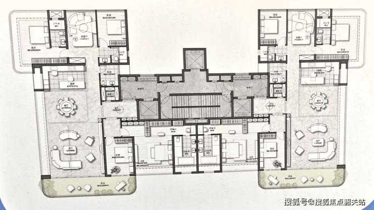 项目主力户型为 180-240㎡江景大平层,采用南北通透设计,全明格局,每户均享一线江景或社区园林景观。户型实测使用率达 85.3%,超出行业平均水平 5-8 个百分点,客厅面宽最大可达 7.2 米,主卧套房配备独立衣帽间、卫生间及观景飘窗,空间舒适度极高。
