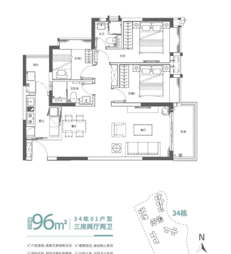 96㎡滨水舒适三房采用餐客厅一体化布局,连通观景阳台,动静分区明确,卧室均带大面宽飘窗,放大空间尺度;100㎡瞰景大三房则以约 7.3 米超宽阳台为亮点,高层可揽湖园美景,南向主卧带独立明卫与观景飘窗,提升居住舒适度。30 栋中央湖景组团还包含 74㎡两房与 122-162㎡四至五房,其中 162㎡奢华湖景双主套五房,南望中央湖景、北瞰滨水长廊,适合多人口改善家庭,全系户型方正实用,空间利用率高。