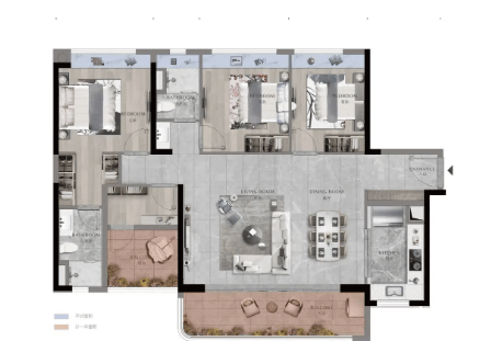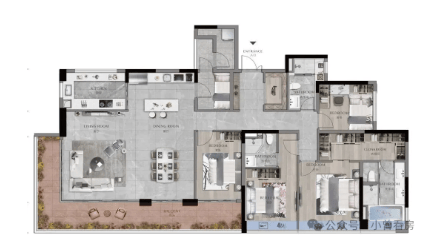 社区自建的约3万平方米艺术商业综合体为居民提供了便捷的生活服务,同时10公里范围内还有万达广场、GOGO新天地、万博、山姆会员店等大型商业综合体,满足了日常购物、娱乐、休闲等多种需求。