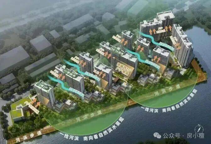 楼栋规划:项目整体规划 21 栋住宅及 1 栋政府统筹用房,包含 16 栋 14-16 层小高层住宅、5 栋 4 层临河叠墅产品