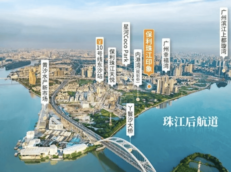 保利珠江印象坐落于广州荔湾区白鹅潭CBD东沙国际商贸港片区,是《广州市国土空间总体规划(2025-2035)》中定位的“广州西部中央活动区(CAZ)”核心资产。项目周边集聚双太古商业体(53万㎡)、万象城(26.9万㎡)、广船综合体(67万㎡)等顶奢商圈,步行10分钟可达已开业的健康港·星河COCO Park,满足高端消费需求。2025年荔湾区新房网签量达1,876套,保利珠江印象以286套销量位居区域第一(均价4.8万元/㎡),市场认可度极高。
