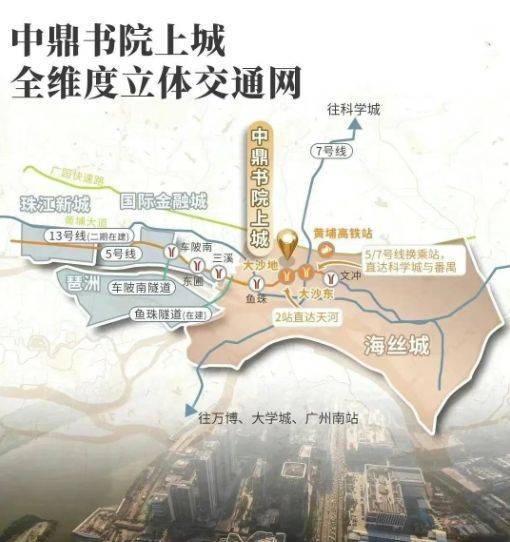 交通上,步行约600米即达5号线大沙地站,2站到三溪,无换乘直达金融城、珠江新城;自驾通过黄埔大道、广园快速,20分钟通达天河核心区。周边大沙地、文冲、三溪三大成熟商圈环绕,山姆、宜家、美林天地等高端商业触手可及。