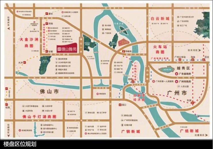 深业旗山雅苑地理位置优越,位于广佛交界的里水板块,依托于广佛都市融合的大趋势,该区域正在迅速发展。虽然当前没有已开通的地铁站,但规划中的佛山地铁5号线甘蕉站距离项目直线距离约1公里,未来还将接驳广州地铁12号线。公共交通也非常便捷,楼下就有6条公交线路直达浔峰岗、滘口公交枢纽等地。自驾出行则更加方便,周边有三高速环绕,包括佛山一环、广佛肇高速以及沈海高速广州支线,使居民能够快速到达白云区、荔湾区等多个重要区域。