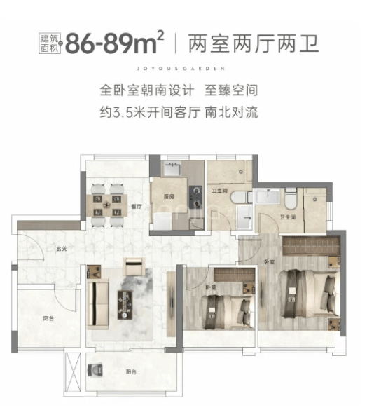 户型设计方面,【金地熙悦】采用蝶式塔楼结构,实现户户朝南,采光通风效果极佳。主力户型包括建面约76㎡2+1房两厅一卫、86/89㎡三房两厅两卫、107㎡四房两厅两卫等多种选择,满足不同家庭结构的需求。所有户型均为全装修交付,装修标准统一,材料环保,工艺精细,空间利用率高,动线合理,兼顾实用性与舒适性。特别是入门级76㎡户型,在北滘片区堪称极低上车门槛,适合年轻刚需群体;而107㎡四房户型则更适合多人口家庭,功能分区明确,私密性强,居住体验优越。