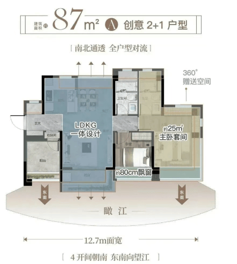 87A户型:三房两卫,四开间朝南,3.8米横厅直面园林;
